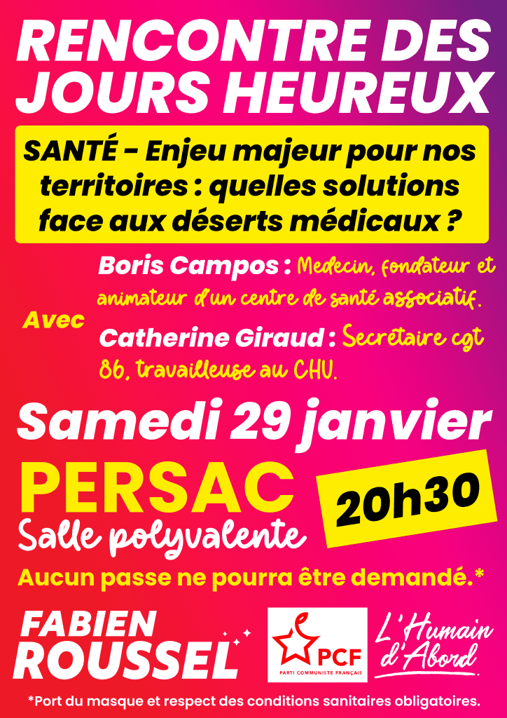 Le débat sera animé par le Docteur Boris CAMPOS qui a créé un Centre de Santé associatif à Lorient et en présence de Catherine Giraud, travailleuse de la santé et responsable syndicale.